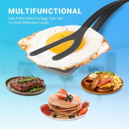 Egg Flipper Spatula Tongs (Set of 2) – Non-Stick 2-in-1 Grip & Flip Kitchen Tongs for Pancakes, Fish, Eggs, and More – Heat Resistant Cooking Tool (Black)
