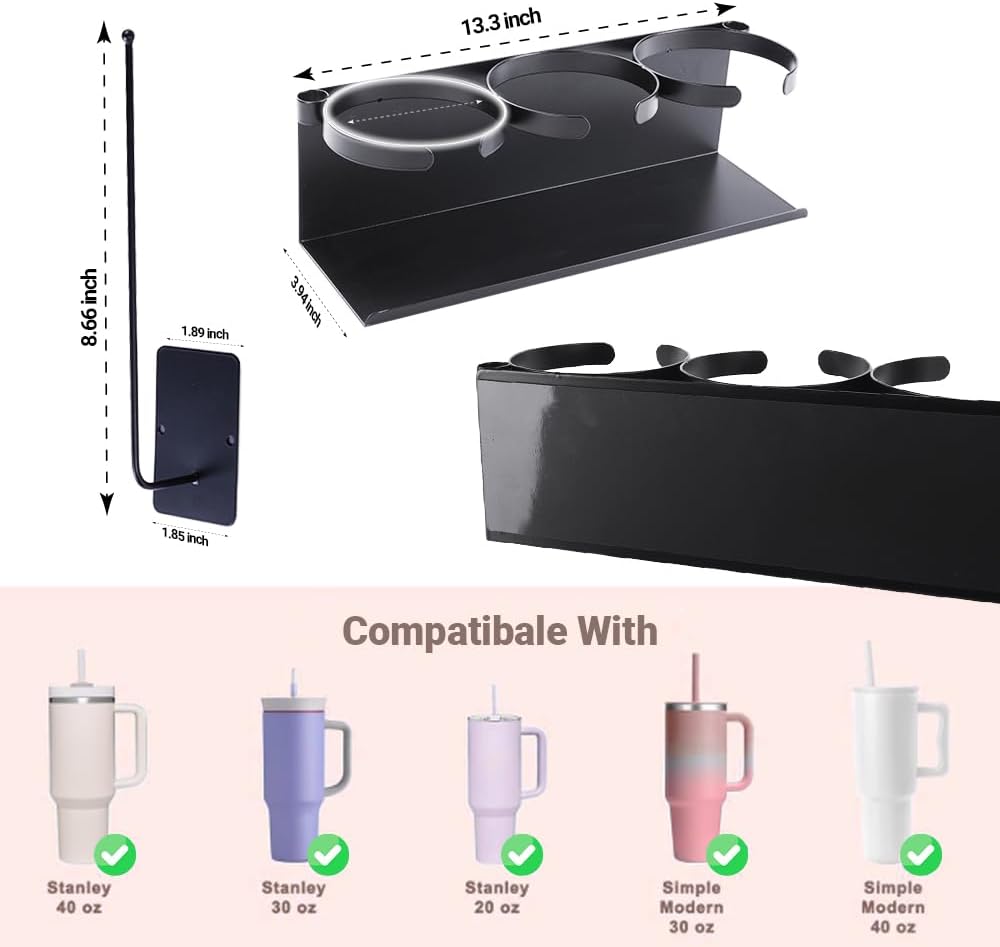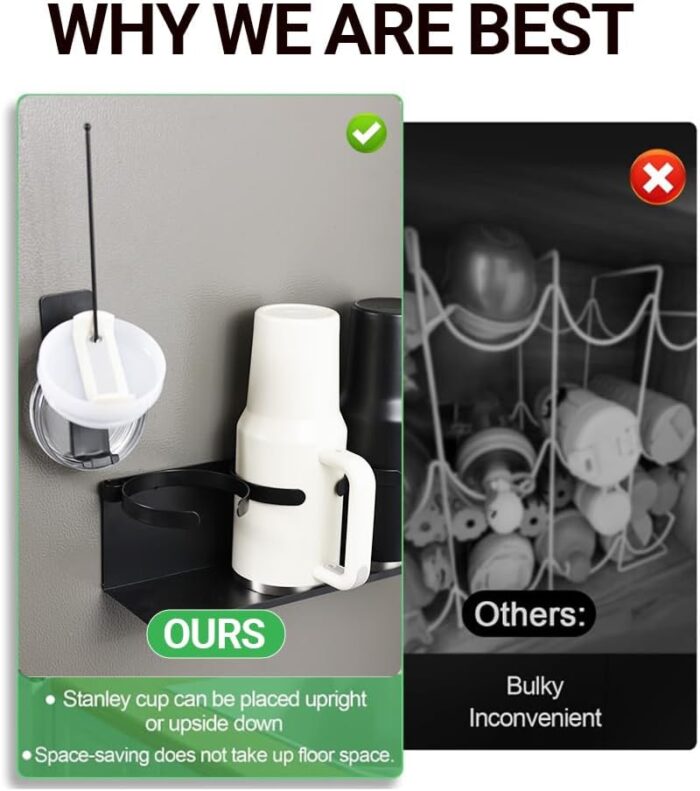 • Strong Magnet, No Slip: No more tumbler tumbles! The ZONZEST for stanley cup organizer uses a powerful N52 magnet that holds up to 10 lbs, yes really. Whether it’s your 30 oz or 40 oz tumbler with a handle, this heavy-duty holder keeps it securely in place and always within reach. Stick it to your fridge or any metal surface and enjoy peace of mind knowing your favorite drink is safe, steady, and stylishly stored.