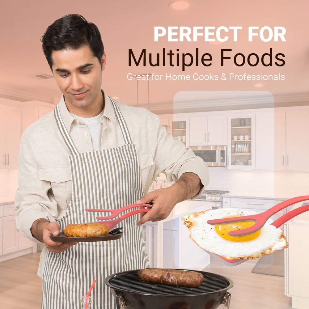 - 🍳Versatile 2-in-1 Design: Revolutionize your cooking experience with ease as you effortlessly egg flipper Spatula Tong and securely grip your foods. This innovative culinary tool is expertly designed to handle a variety of kitchen tasks with precision and versatility.